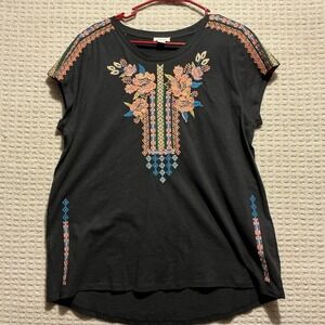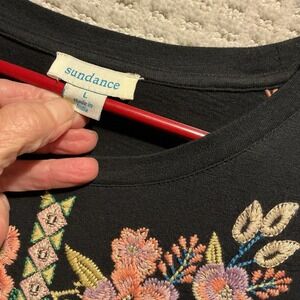 Sundance Women's Knit Top Shirt Black Embroidered Aztec Southwest Inspired L