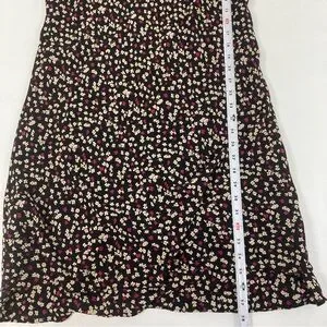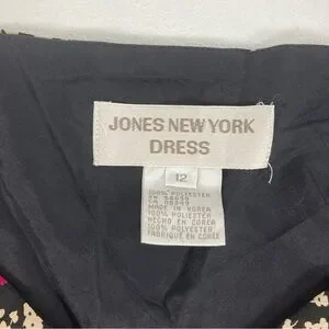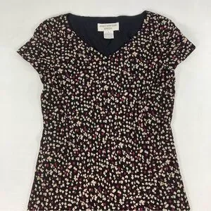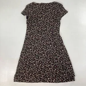Jones New York Midi Dress Size 12 Women Black Floral Short Sleeve V Neck Pull On