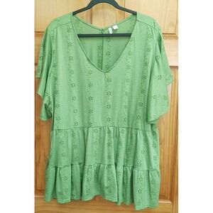 Cato Woman's Top Pullover Flutter Sleeves 2 Ruffle Tiers Blouse Green Size 22/24