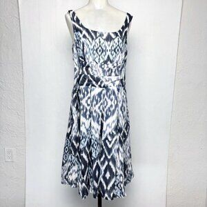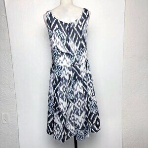 Peruvian Connection Ikat Fit and Flare Blue & White Sleeveless dress Size 10