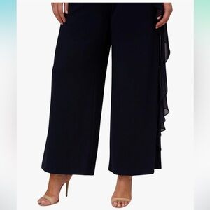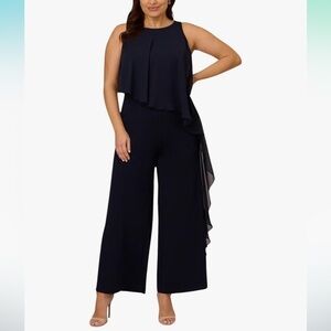 NWT Adrianna Papell Chiffon And Crepe Jumpsuit Midnight Navy Blue Plus