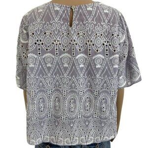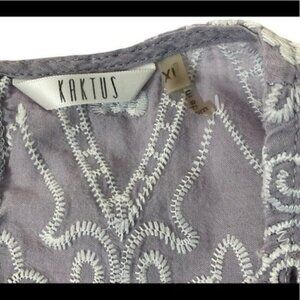 KAKTUS Embroidered boho lavender blouse side XL short sleeve keyhole button back