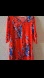 Floral Tunic Blouse Womens Small Red Blue Abstract Roll Tab Sleeve Excellent