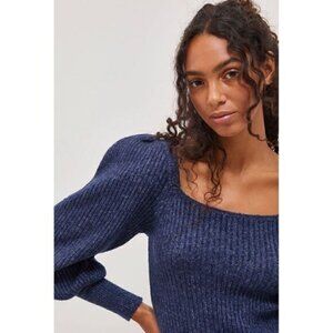 NEW Anthropologie Asha Navy Square Puff-Sleeved Shimmer Knit Mini Dress Medium