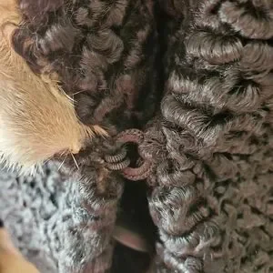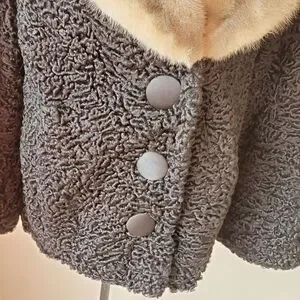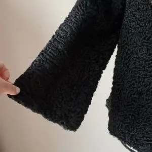 Beautiful black boucle fur with a mink collar. The lining has the name Georgette embroidered into it. This is a very well made high quality fur with a bit of a bell sleeve. Stunning 😍.