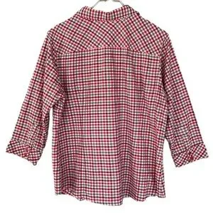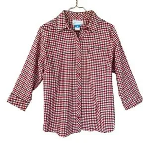 Columbia Plaid Button Down Shirt Crinkle Cotton 3/4 Sleeve L
