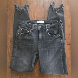 Zara Black Skinny Jeans with Distressed Frayed Hem