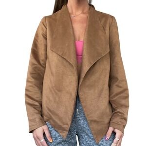 Mossimo Womens XS Tan Camel Faux Suede Open Front Draped Waterfall Blazer Jacket