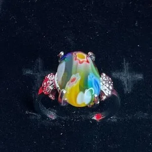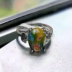 NWT Women’s Flowers Red Tumbled Stone Silver Steel Cute Ring Size 19/US10