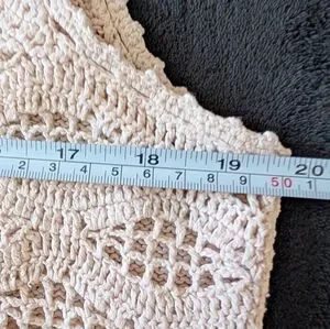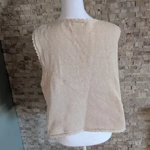 Vintage 80s 90s cream crochet sleeveless v neck tank top or vest with knit buttons up front and beautiful edge detailing. Perfect for layering.