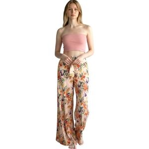 SHORE Pink Tube Top Tropical Palazzo Pants SET X-Small Resortwear NWT $256