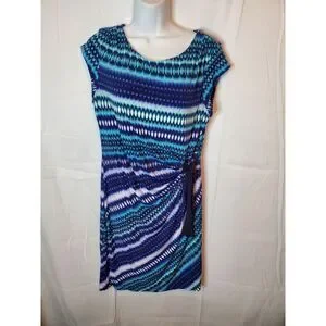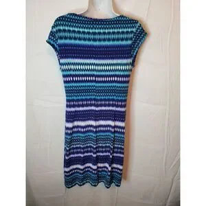 Sheath Dress Blue CB Established 1962 Women's Short Sleeve Round Neck Sz 12
