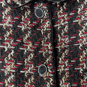 Doncaster Tweed Jacket Black Red Gold Metallic Detail Wool Blend Front Button Office Mature Workwear Boardroom Chic