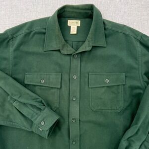 L.L.Bean Traditional Fit chamois cloth shirt in classic forest green. Heavyweight 100% cotton flannel with button front and dual flap chest pockets. Durable heritage staple ideal for layering, outdoor wear, or everyday workwear styling. Good pre-owned condition, see images for details.