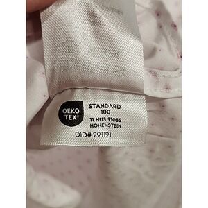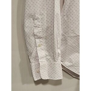 This Tommy Hilfiger men's button-up shirt in size L features a classic white color with a slim fit and all-season stretch for added comfort and flexibility. The shirt has long sleeves, a collared neckline, and a button-down closure, making it ideal for casual occasions. Made from cotton, this machine washable shirt is perfect for all seasons and is adorned with Tommy Hilfiger branding and a timeless classic theme.