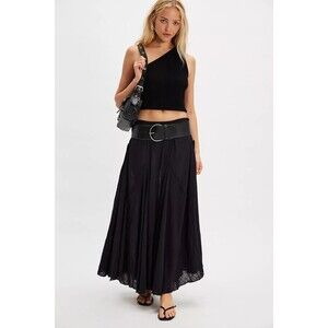 Free People Madras That Solid Linen Maxi Skirt A Line Godet Mid Rise XS 284925
