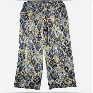 Denim and Co Beach blue yellow wide leg cargo pants with elastic waistband 3x