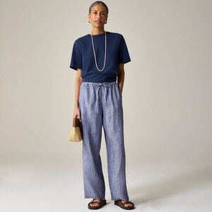 NEW!! J. CREW New Soliel Pants Striped Linen Blue & White Elastic Waist X-Large