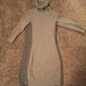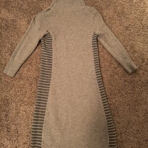 Cozy light gray knit sweater. Features a textured design. 3/4 sleeves.
