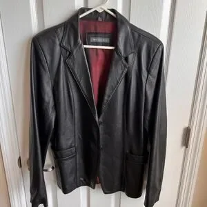 Whet Blu Leather Blazer Jacket Womens Large Black Single Button Red Lining