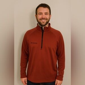 This rust-colored quarter-zip pullover by Columbia is built for guys who want comfort, durability, and a clean look. In Excellent Used Condition (EUC), it features a front 1/3 zip, super soft warm lining, and a relaxed fit β perfect for layering or wearing on its own. Ideal for weekend adventures, workouts, or everyday casual wear.