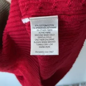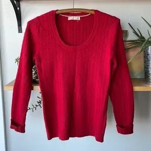 Lightweight cotton cable knit with a touch of spandex. Could be tucked in. Scoop neck. Beautiful classic red color. Sz M. Excellent condition.