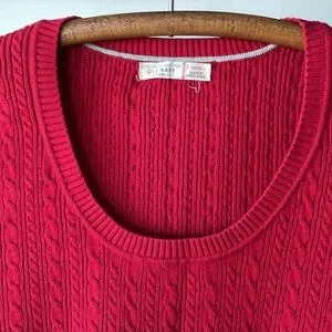 Old Navy Red Cable Knit Cotton Scoop Neck Sweater Sz M