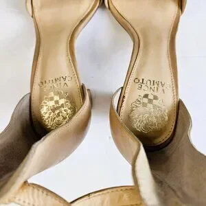 Vince Camuto Beige 3.5" Block Heel Dress Sandal Shoes With Ankle Strap. Size 8M