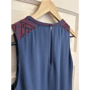 Madewell Women's Blue Silk Embroidered Sleeveless Shift Dress Lined Size Small