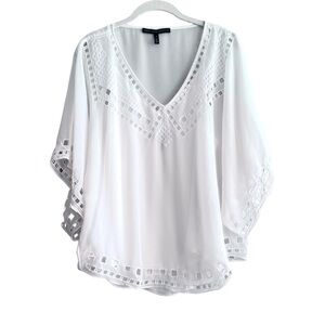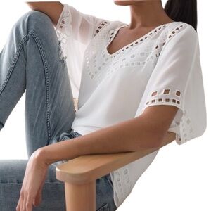 WHBM Cutout Detailing Kimono Blouse Chiffon with Cami Eyelet Pure White Size M