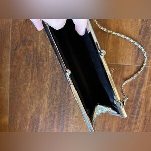 This silver clutch purse features a kiss-lock closure. Vintage