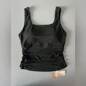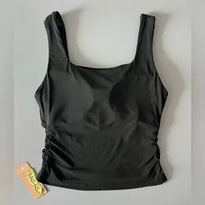 NWT OGL Eco-SkinKiss® Airy Square Neck Side Ruched Brami Tank - Black Size L