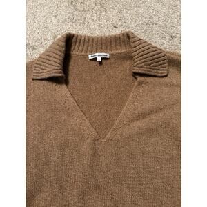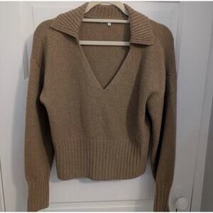 Reformation Beckie Cashmere Collared V Neck Sweater in Panko Camel Beige Tan