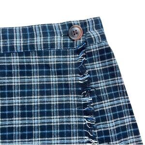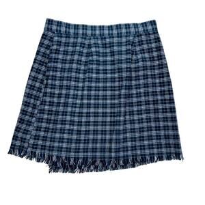 Urban Outfitters Mini Skirt Blue Plaid Fringed Size S