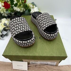 Women’s Gucci monogram Angelina slide platform sandal size 37 made in Italy