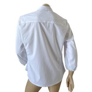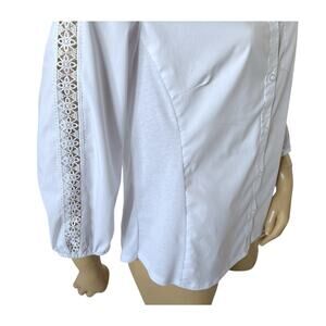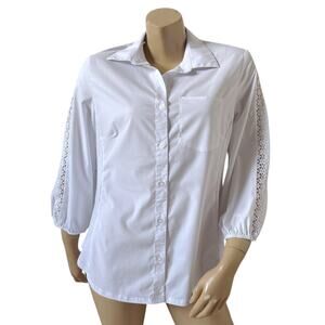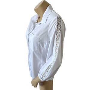 Zac & Rachel Womens Large White Button Up Shirt Crochet Sleeve Collared Blouse