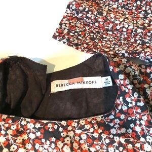 Rebecca Minkoff Dress Cotton Smocked Red Multi Ditsy Floral Tabby (M)