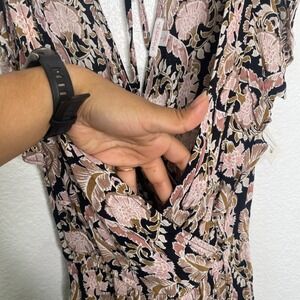Xhilaration Pink Floral Paisley Maxi Dress Faux Wrap Ruffle Sleeve Boho Small