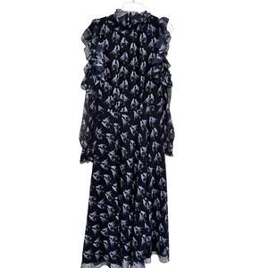 Ted Baker Hilaina Love Birds Black Cold-Shoulder Midi Dress Size 2(US 6)