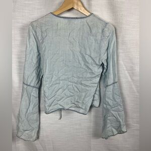 Y2K Vintage Coquette Wrap Shirt Cropped Long Sleeve Denim Dainty Balletcore Smal