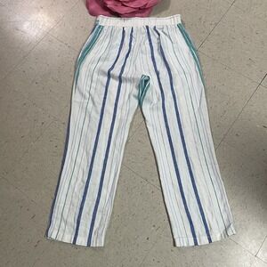 ELLEN TRACY Women's Sz Medium Linen Blend Striped Ankle Pants w/ Pockets