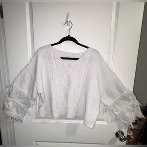 Chic White sweater with stylish fringe details. Perfect for casual outings.