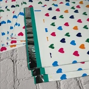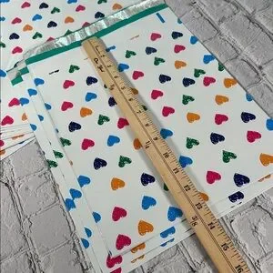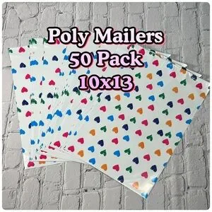 Poly Mailers 50 Pack 10x13 Colorful Hearts Design Pink Blue Orange Green