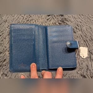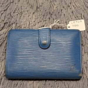 Stylish wallet with a textured finish. Features a secure closure. Classic Louis Vuitton design. Normal wear and tear.