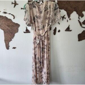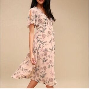 NWT Lulus ASTR The Label Blush Floral V-Neck Midi Dress With Flutter Sleeves