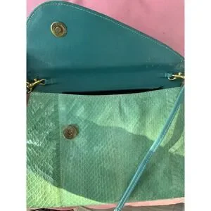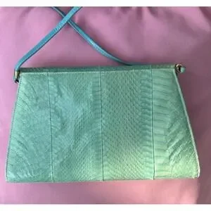 Vintage Jasmin Teal Snakeskin Shoulder Bag Purse Made in Hong Kong 12"x7"