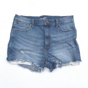 Wrangler Womens High Waisted Distressed Denim Shorts Medium Wash Raw Hem Size 31