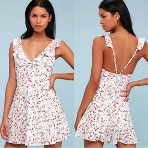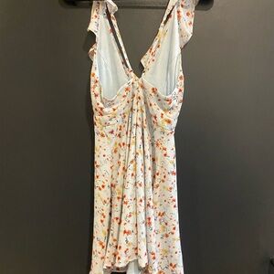Chic backless design. Vibrant floral print. Perfect for summer outings, graduation parties.