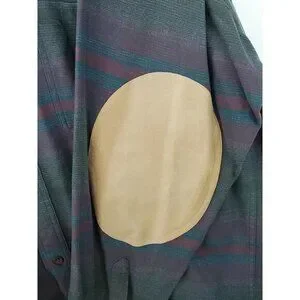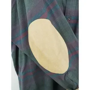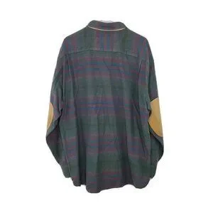 Cabelas‎ Striped Button Up Long Sleeve Elbow Patch Suede Leather Accent Shirt XL