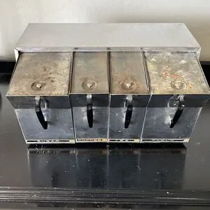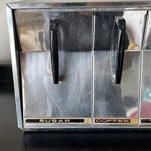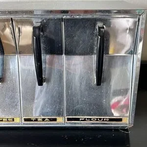 Vintage VERY RARE sugar, coffee, tea, and flower Lincoln beauty ware metal divided pull out canister
